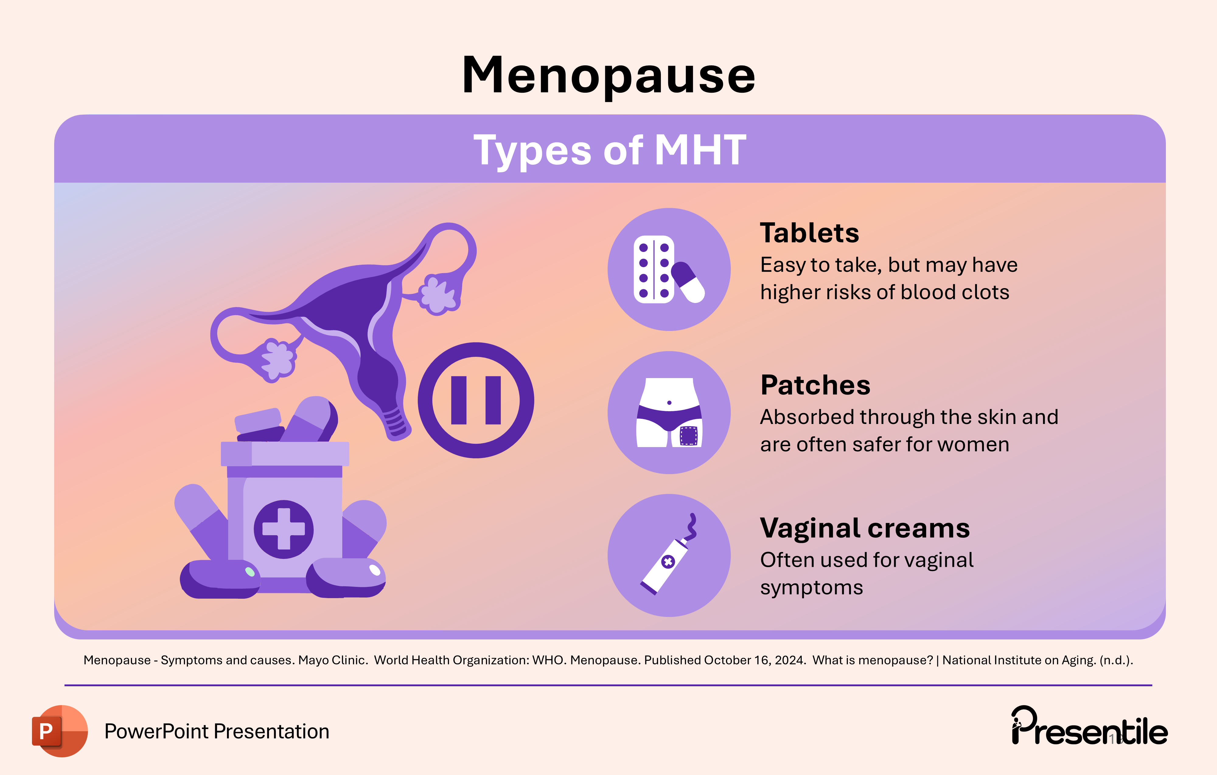Slide 19: Menopause – Types of MHT (Administration Routes)