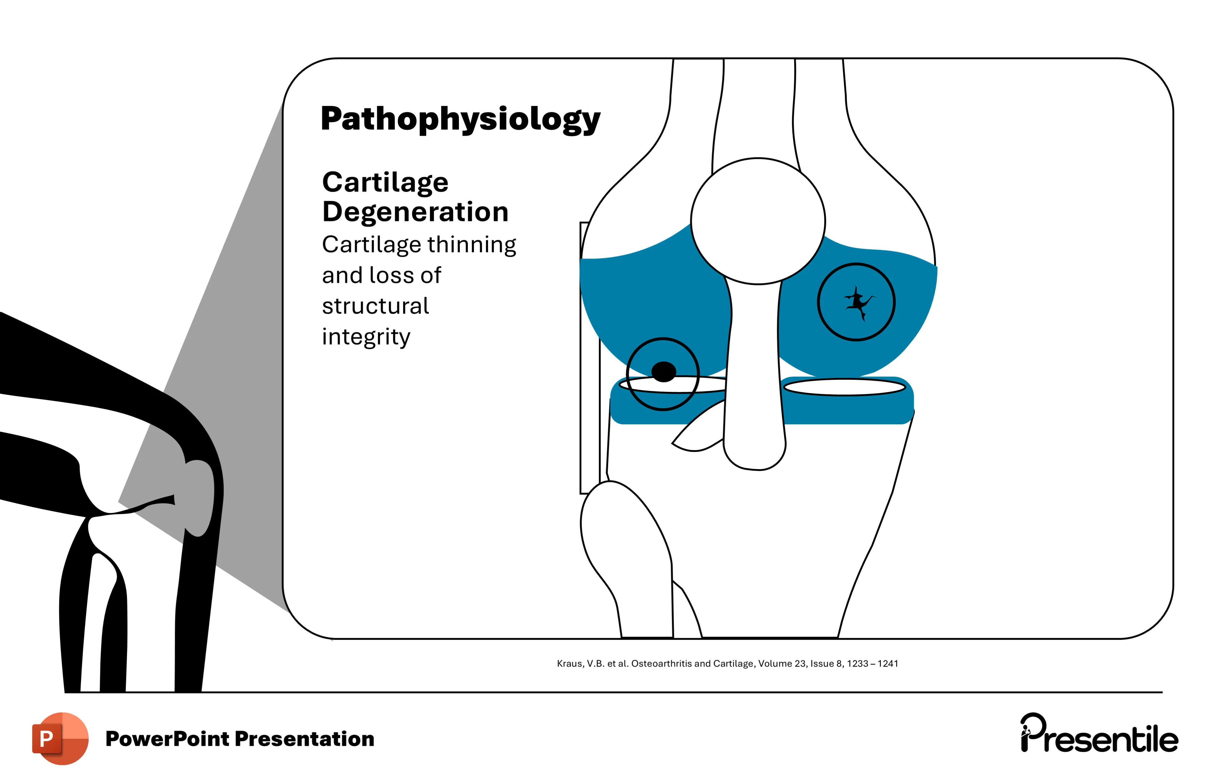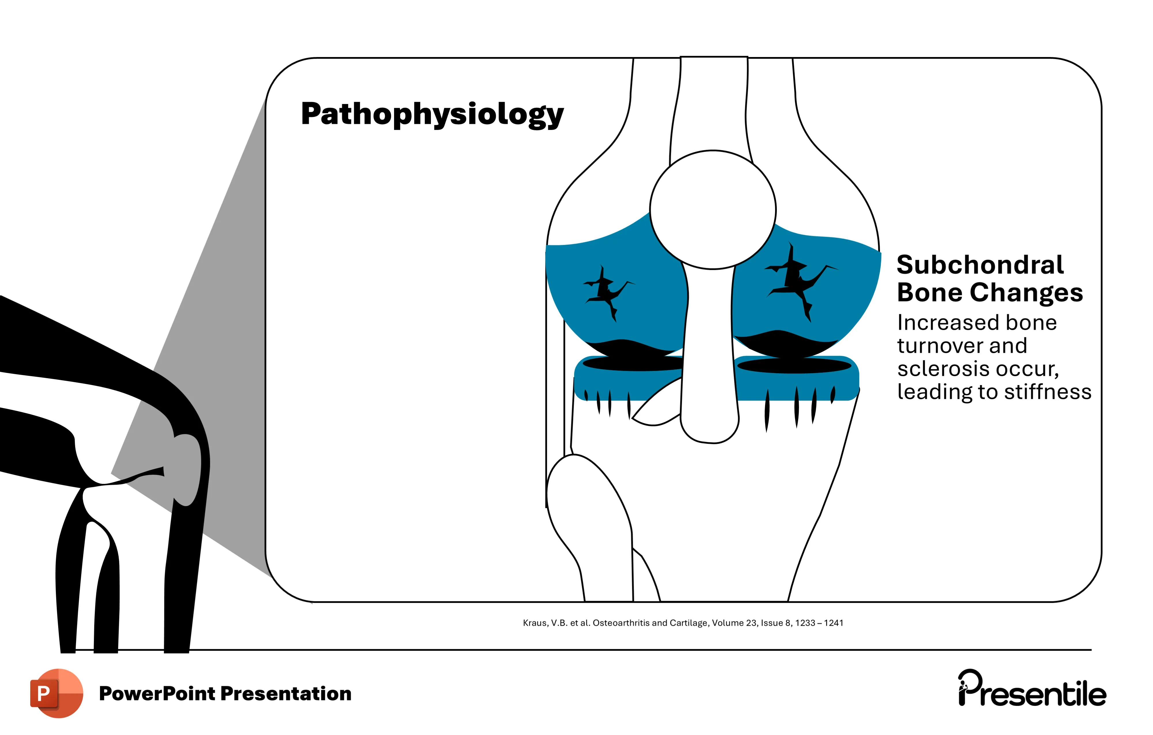 • The professional visual of the inflamed joint helps simplify this complex biological process, making it easier for your audience to grasp. Highlighting synovial inflammation also emphasizes its importance as a therapeutic target in osteoarthritis management.