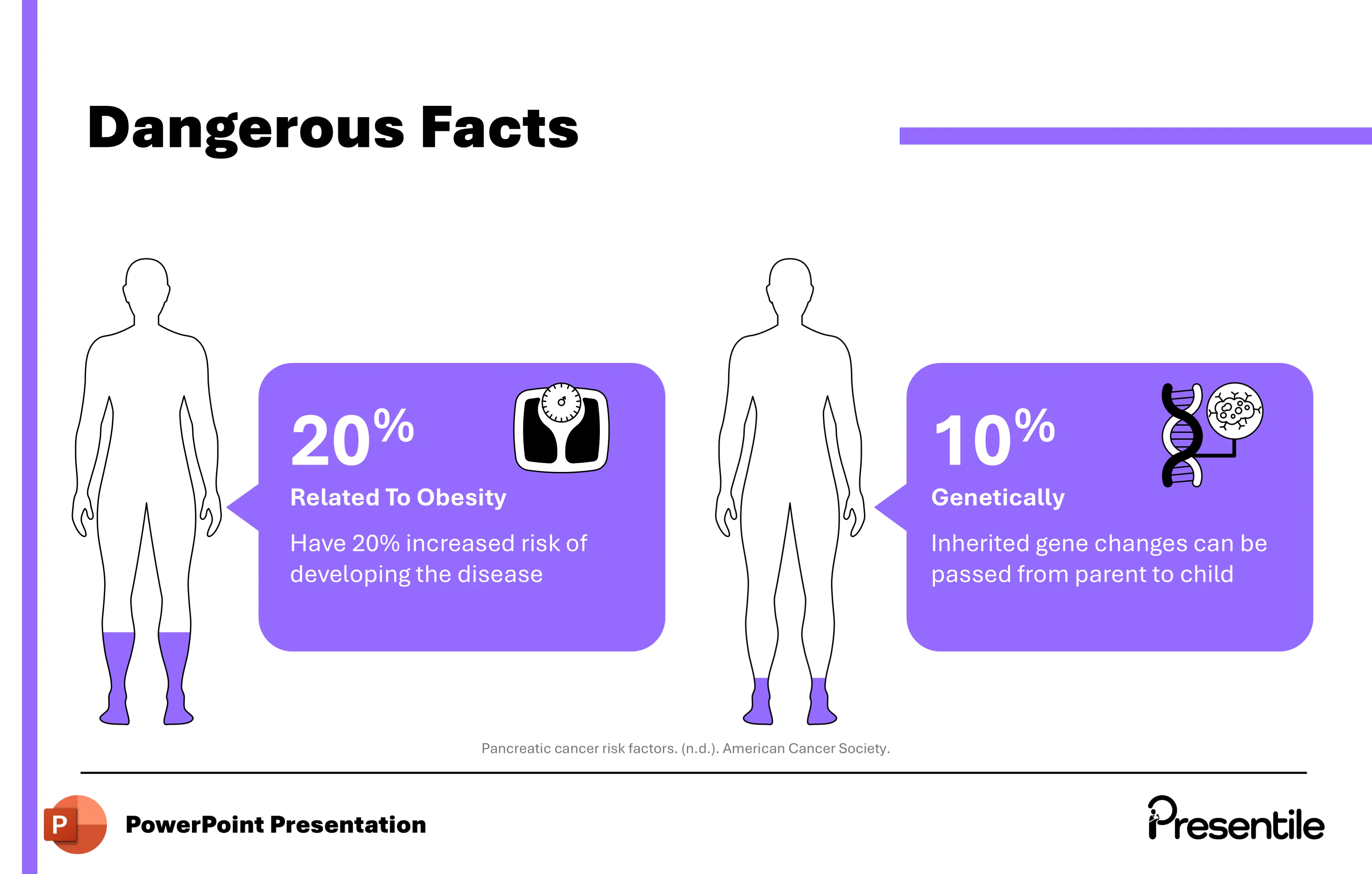 • This professionally designed PowerPoint slide presents impactful data on key risk factors for pancreatic cancer, making complex statistics easy to understand.