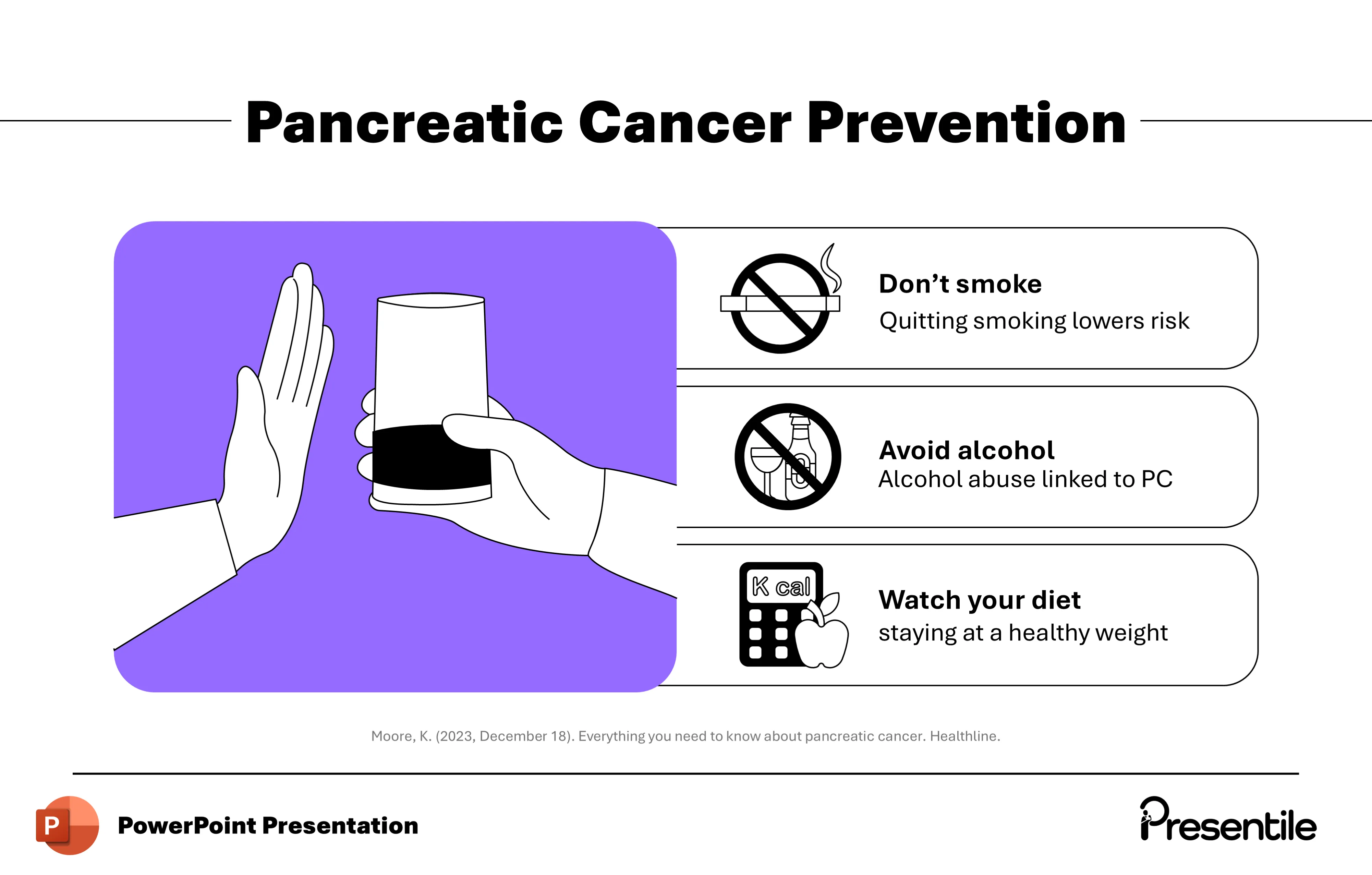 • This professionally designed PowerPoint slide provides clear and actionable guidance on pancreatic cancer prevention.