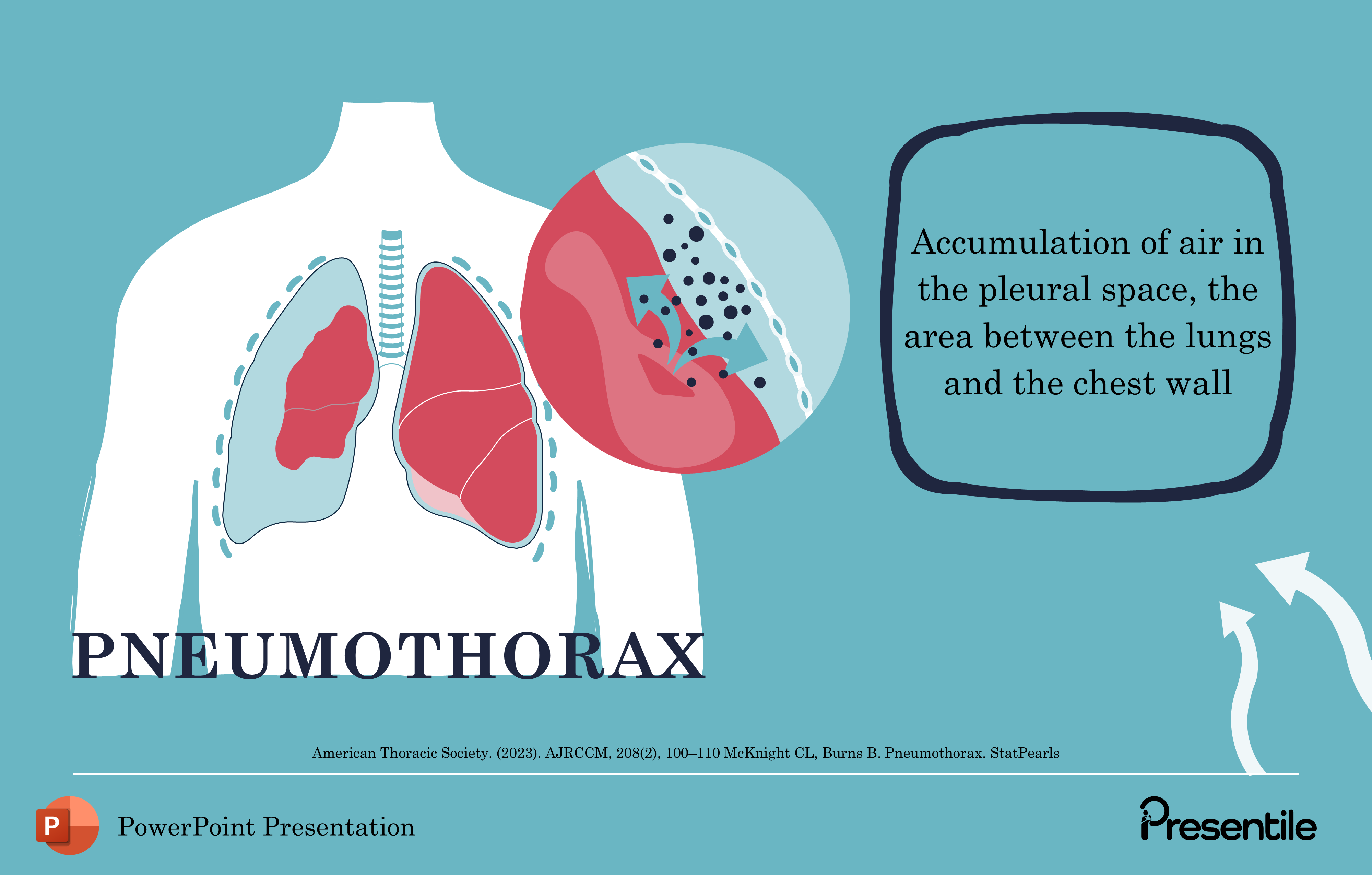 The large, bold title "PNEUMOTHORAX" is instantly recognizable, effectively communicating the primary topic and setting a focused, medical tone for the detailed content to follow.