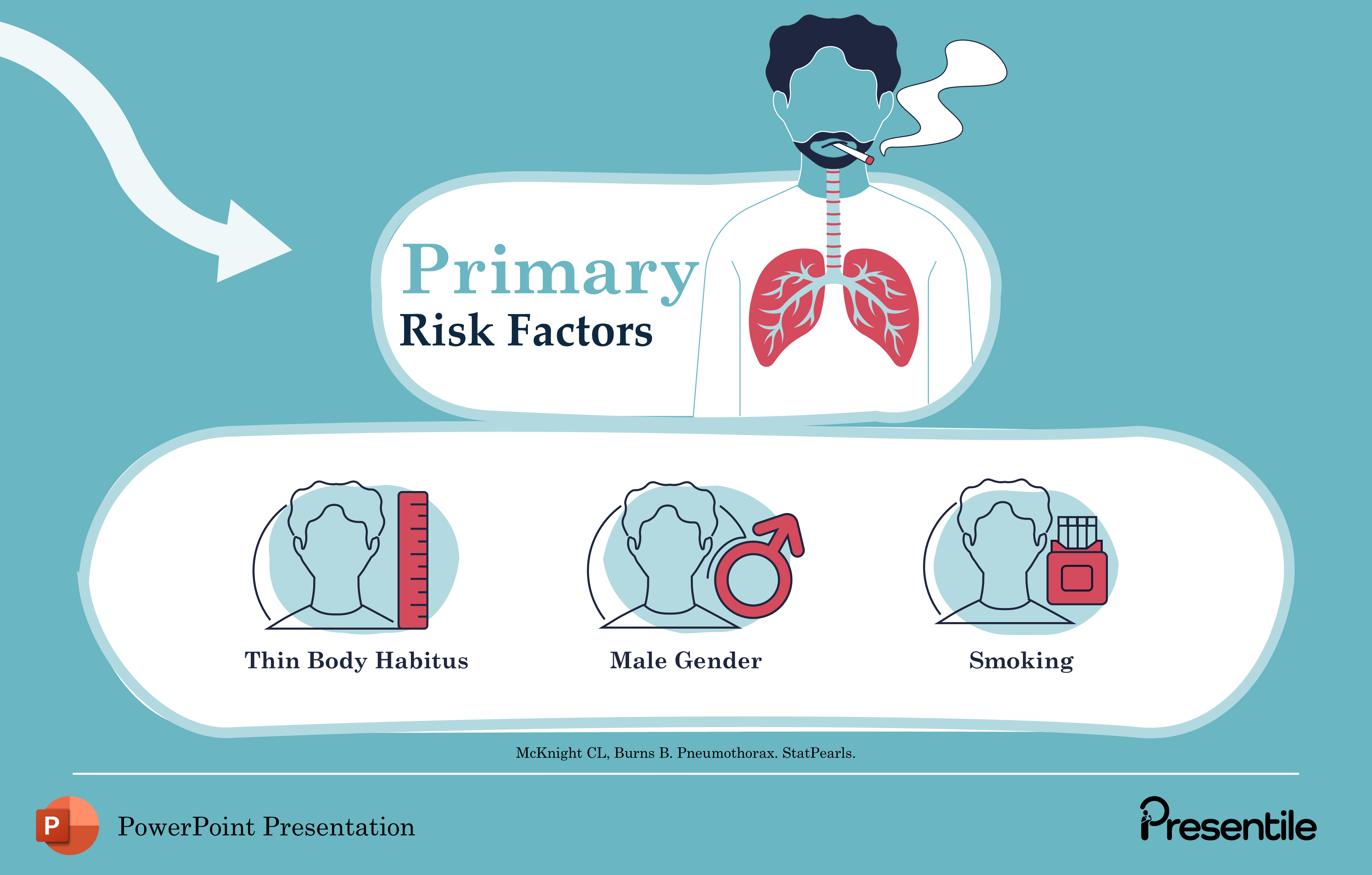 This slide details the secondary risk factors, focusing on pre-existing medical conditions that increase the risk of pneumothorax.
