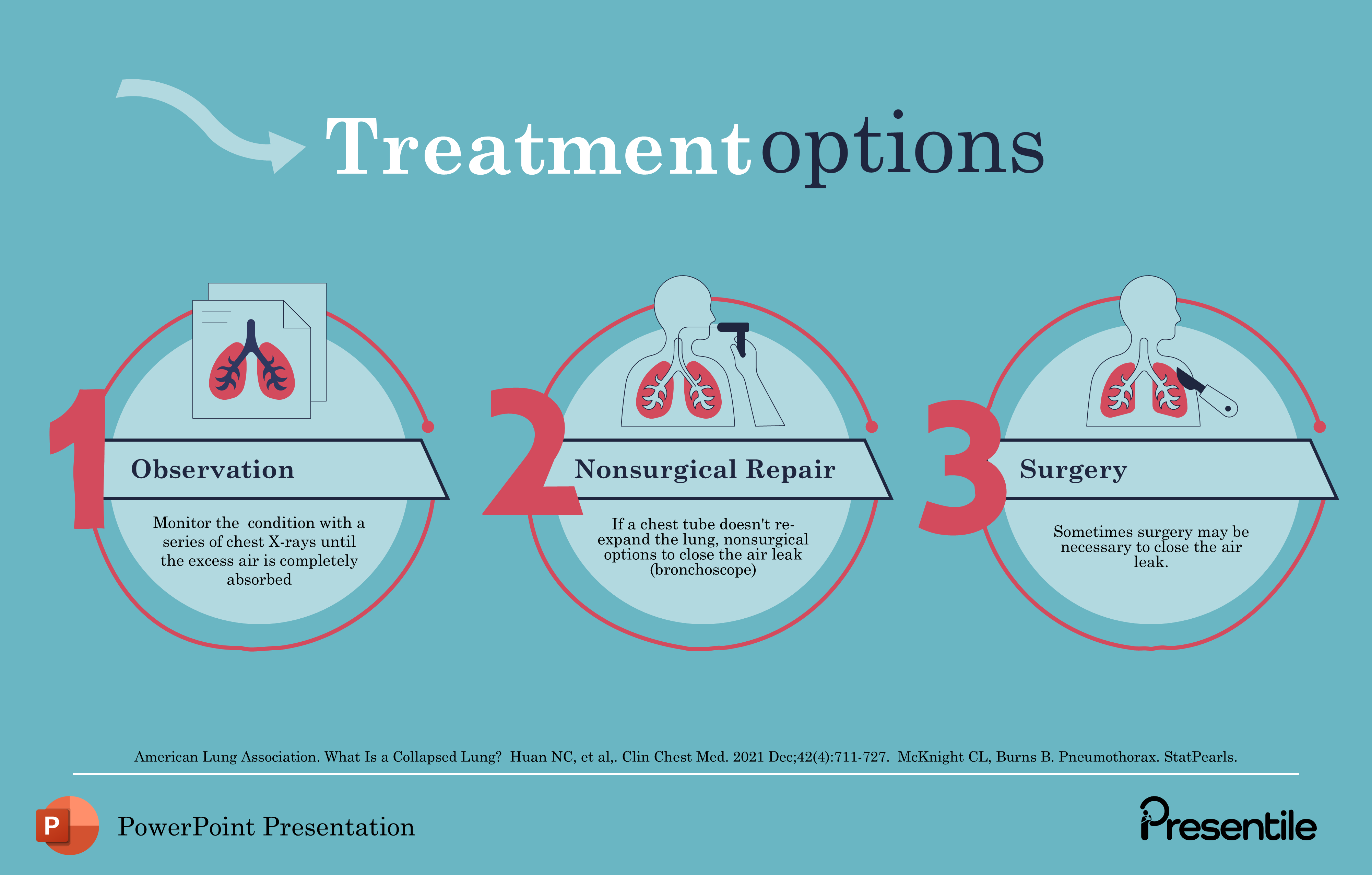 The stylized illustration of the collapsed lung on the left ties the final slide back to the presentation's core subject matter, maintaining the overall design theme.