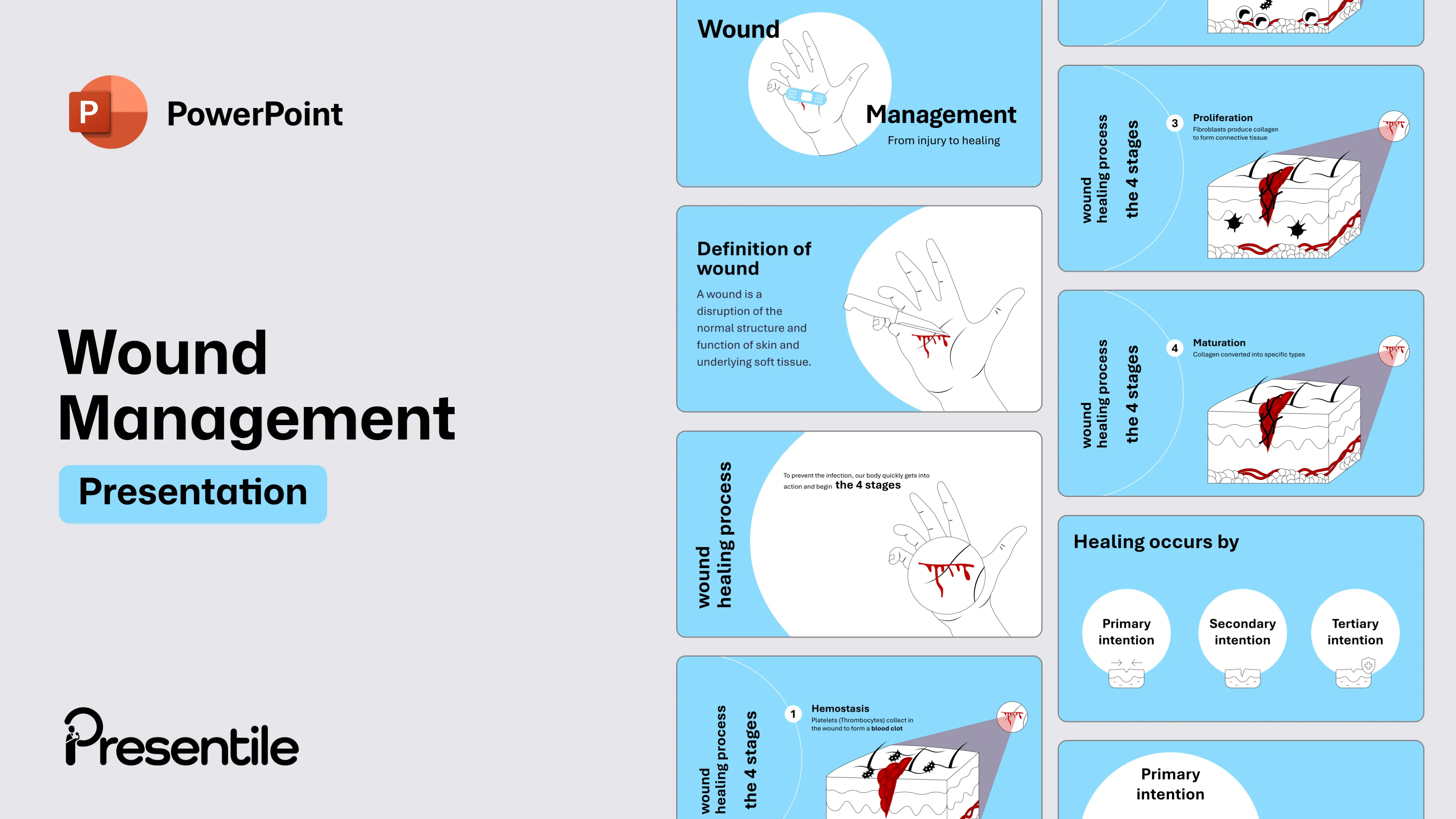 • This design effectively breaks down complex concepts into digestible parts, making it easy for the audience to understand the different pathways of wound closure.