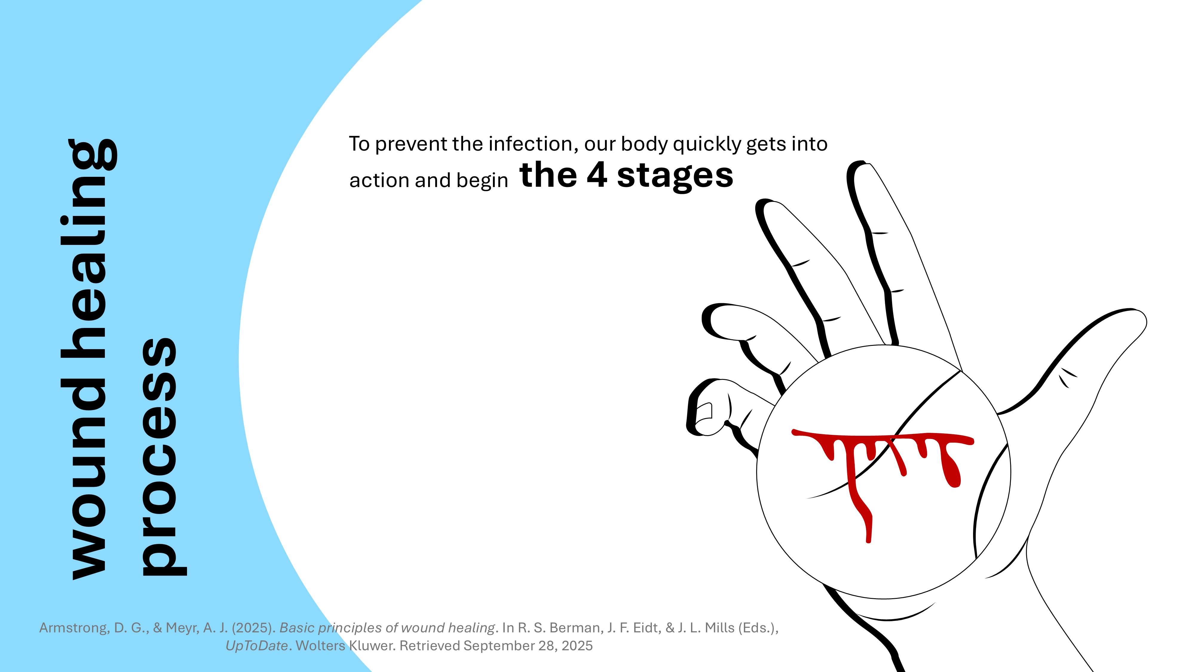• It highlights that the body immediately begins a four-stage process to prevent infection and restore tissue integrity.