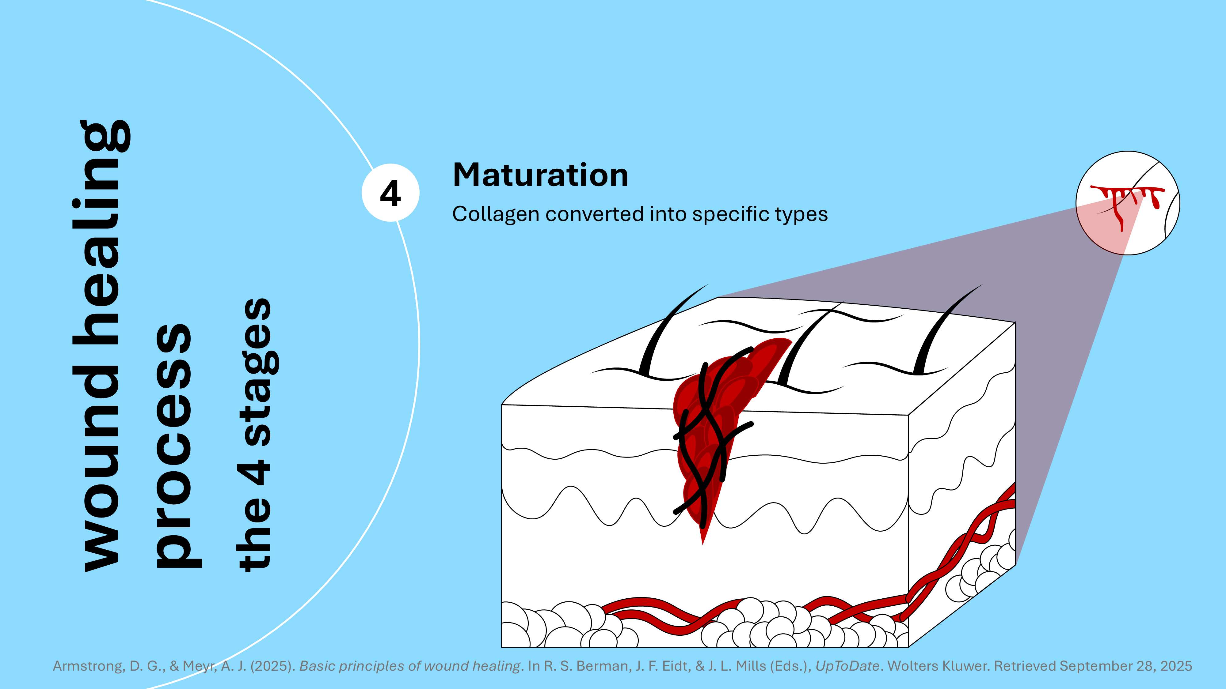 • This slide describes the final stage of wound healing, Maturation, also known as remodeling.